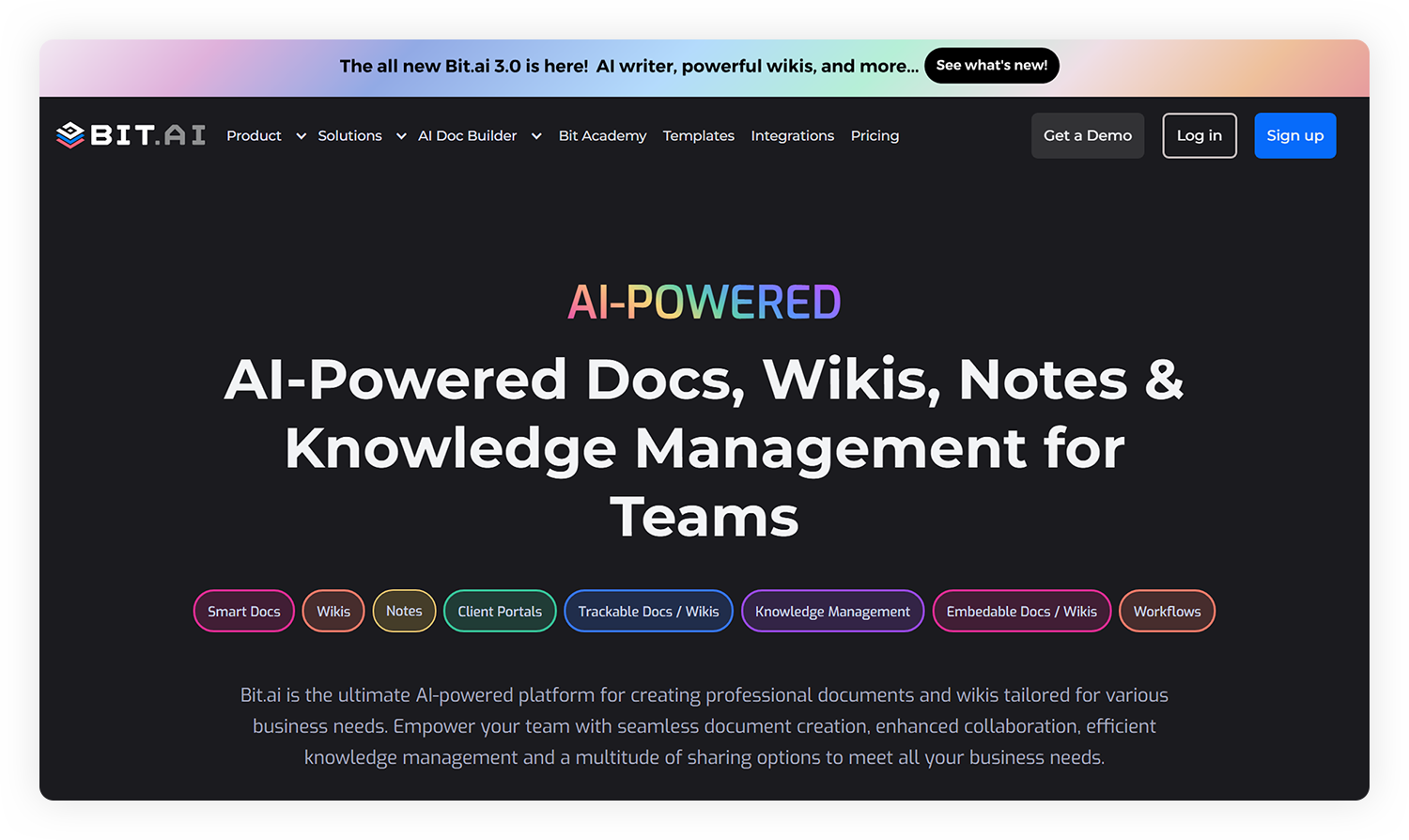 Top of our list is Bit.ai! Bit.ai is not just another document tool, but it’s the world’s smartest AI-powered document collaboration platform designed to make teamwork collaborative and easy to do. It’s like the digital workspace where ideas, content, and people come together as you work together in the moment. Whether it’s managing internal knowledge, client material, or brainstorming campaign ideas, Bit.ai converts static documents into interactive living documents: smart, responsive, and equipped with physical action.