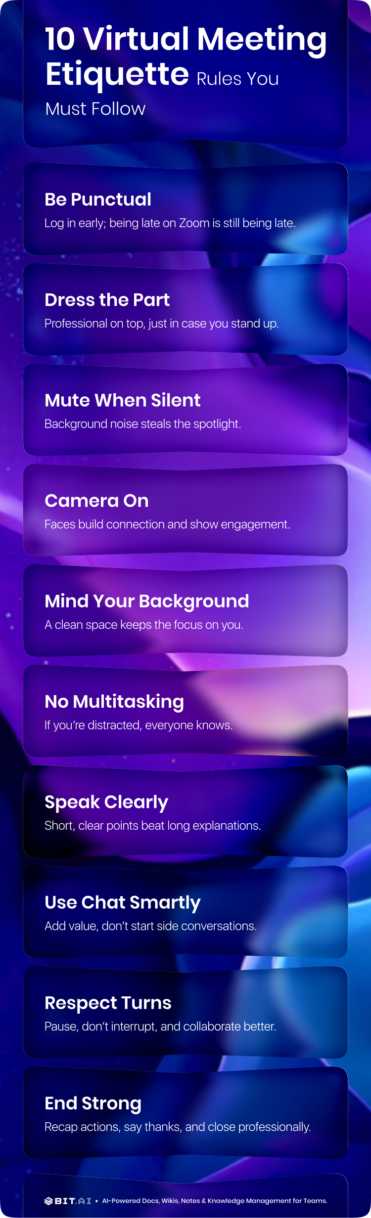 Here are ten virtual meeting etiquette tips that can instantly improve how you show up in virtual meetings.