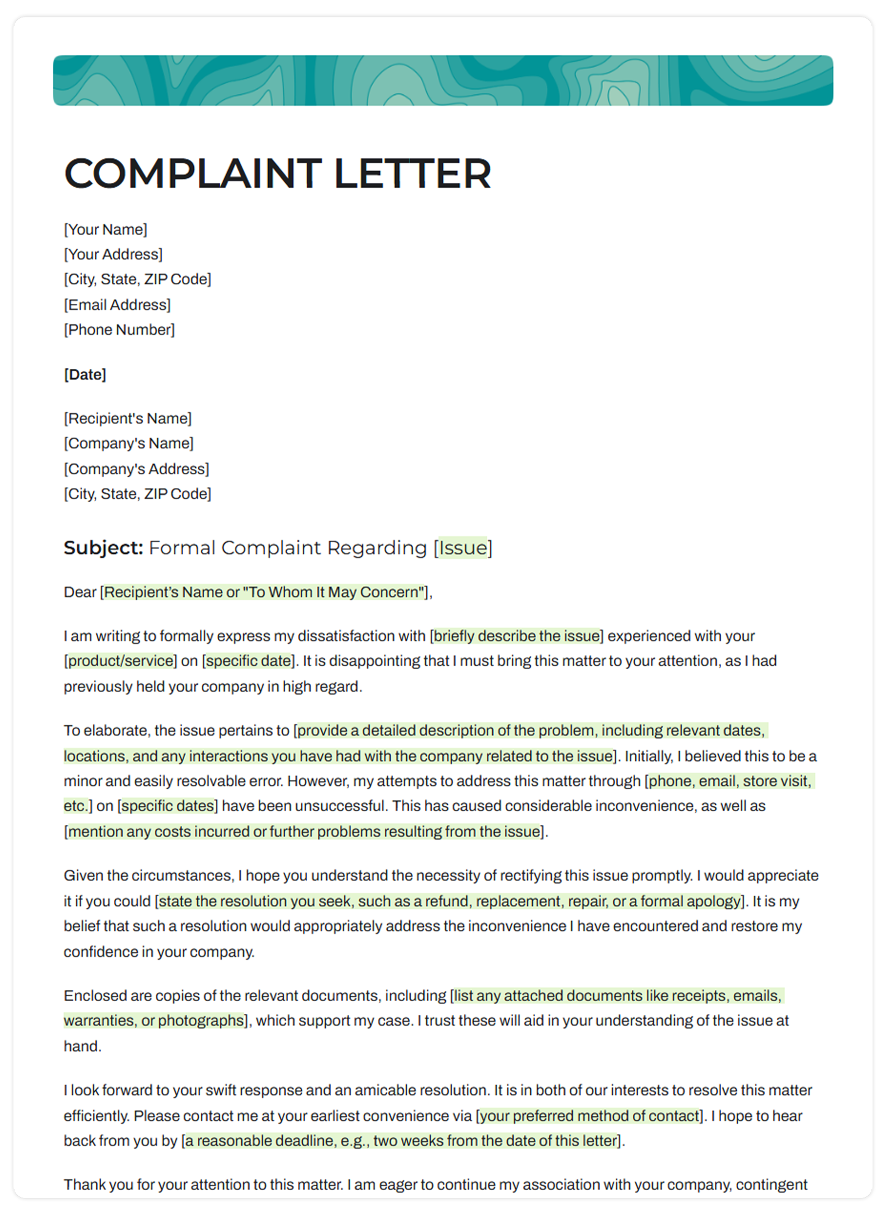 Learn more 👉 Complaint Letter: What is it & How to Create it?