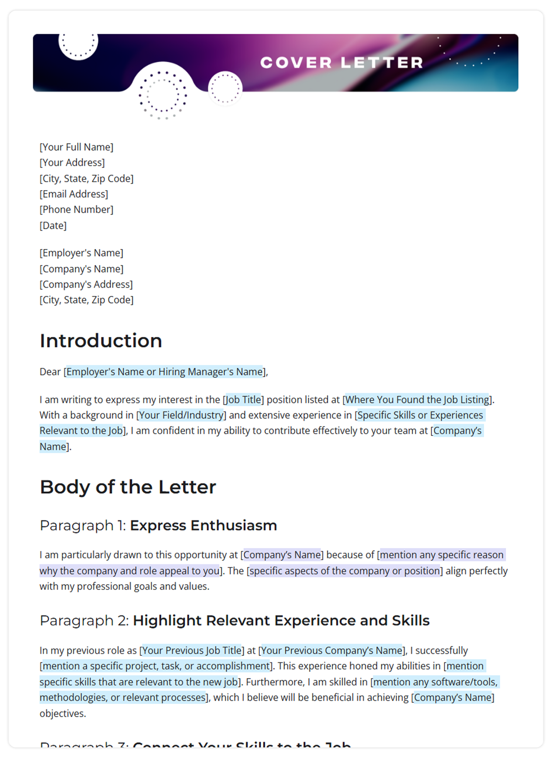 A well-crafted cover letter reflects your personality in the application and helps you stand out. It also shows that you’ve taken the time to understand the company and role.